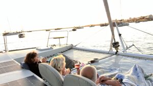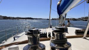 Als an einem Morgen das wunderschöne Schiff von lieben Freunden herausgekrant wurde, war es nicht das übliche Ritual zur Schiffspflege, dem ein baldiges wieder Einkranen folgen würde. Es war die letzte Reise mit ihren Eignern, denn sie hatten ihre Schönheit vor kurzem verkauft und der neue Besitzer würde sie alsbald übernehmen. Viele Jahre haben die Beiden ihr schwimmendes Zuhause genossen, es gehegt und gepflegt, sind eine Einheit mit dem Schiff geworden und haben damit sicher viele Abenteuer in allen Winkeln der Erde erlebt. Die Gesichter unserer Segelfreunde spiegelte ihre Seelenlage deutlich: hier ging ein Lebensabschnitt zu Ende, wo ein anderer, unserer gerade beginnen sollte – das Leben auf und mit dem Meer. Ich war tief berührt.