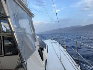 Endlich geht unsere große Reise los. Wir können es kaum erwarten. Allerdings wurden bis zuletzt wichtige Arbeiten noch erledigt. So zum Beispiel die Sprayhood, die samt Sonnenschutz schon für Anfang 2024 beauftragt war. Allerdings konnten bzw. wollten etliche Unternehmen bzw. Personen diese Aufgaben nicht oder nur teilweise zu unserer Zufriedenheit (wir erwarteten einfach nur gute Arbeit für guten Lohn) erledigen. Das Wetter spielte aber auch eine Rolle, es war nicht einfach ein geeignetes Wetterfenster zu finden. Nach vorherrschender Meinung der Langfahrer Community sollte man spätestens im November bereits auf den Kanaren sein. Nichtsdestotrotz fanden wir mit Zustimmung unserer erfahrenen Freunde einen Zeitpunkt bei dem wir es wagen wollten. Der 6. November 2024, ein denkwürdiger Tag für uns, aber auch für die Welt nach Bekanntgabe der Ergebnisse der US-Präsidentschaftswahl.