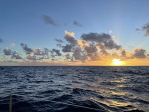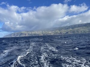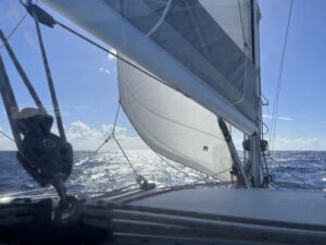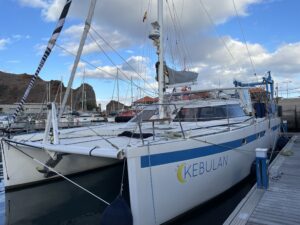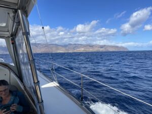 Am Donnerstag, den 17. November liefen wir noch vor dem Frühstück aus dem Hafen von Calheta Richtung Kanaren aus. Zunächst war unser genaues Ziel noch nicht fest. Claudia schrieb von unterwegs die Häfen von La Palma (Santa Cruz) und La Gomera (San Sebastian) an und bekam von beiden eine Zusage für einen Marina Platz für ein paar Tage. Mit Blick zurück sah man wir das Schlechtwetter uns nachkam. Kleine Regengüsse und Windböjen von ca. 30kn kamen holten uns teilweise ein. Wir entschlossen uns nach La Gomera zu segeln. In der Nacht von Freitag auf Samstag hatten wir zunächst ein Flaute und mußten um Fahrt zu machen teilweise die Maschine mitlaufen lassen. Langsam aber stetig frischte der Wind von Ost her auf und erreichte so gegen 4 Uhr morgen teilweise Geschwindigkeiten von 40kn. Wir hatten das Groß im dritten Reff und nur noch einen Fetzen der Rollgenua draußen. Bei diesen Böjen vielen wir grundsätzlich ab, da wir genug Seeraum hatten. Am Morgen ließ der Wind wieder nach. Wir mußten abfallen um noch etwas Fahrt zu machen, was bedeutete das wir San Sebastian nur auf der Kreuz erreichen konnten. Als wir dann ca. 5sm von San Sebastian entfernt eine Wende fuhren wehte ein frischer Wind und wir konnten den Zielhafen auf einem Windwinkel von 37 Grad auf dem Autopiloten anlegen. Da zeigten sich die hervorragenden Segeleigenschaften unseres Balticats, denn wir schossen mit 9-10kn Fahrt gegen den Hafen und waren bereits nach einer halben Stunden nahe der Einfahrt.